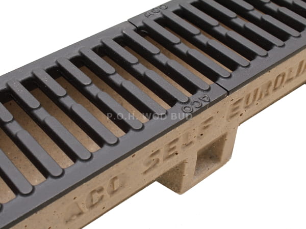 Kanał wykonany jest z polimerobetonu, ruszt wykonany jest z żeliwa.