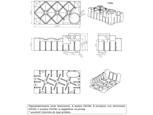 Podziemny płaski zbiornik na wodę deszczową o pojemności 1500l F-Line.