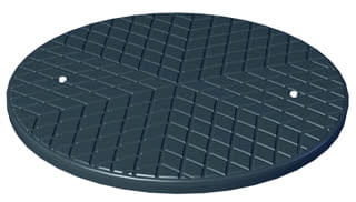 Średnica nominalna pokrywy 600 mm, wykonana z tworzywa sztucznego, wyposażona w zabezpieczenie przed dziećmi (zabezpieczenie przez przypadkowym otwarciem), zgodna z EN 10891.