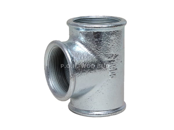 Trójnik wykonany jest z żeliwa ciągliwego, zabezpieczony jest przed korozją cynkową powłoką ochronną.