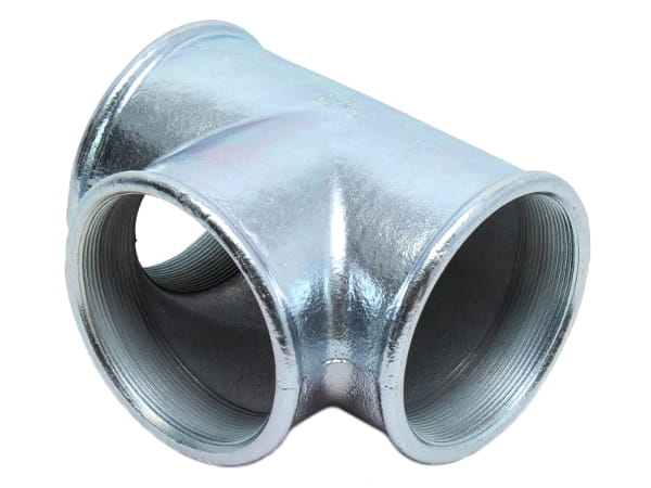 Trójnik wykonany jest z żeliwa ciągliwego, zabezpieczony jest przed korozją cynkową powłoką ochronną.