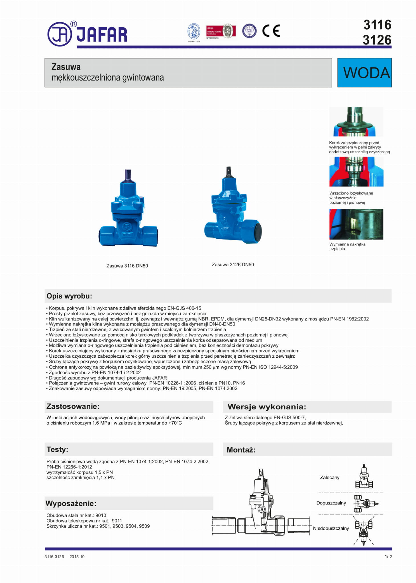 - znakowanie zasuwy odpowiada wymaganiom normy: PN-EN 19:2005, PN-EN 1074:2002.