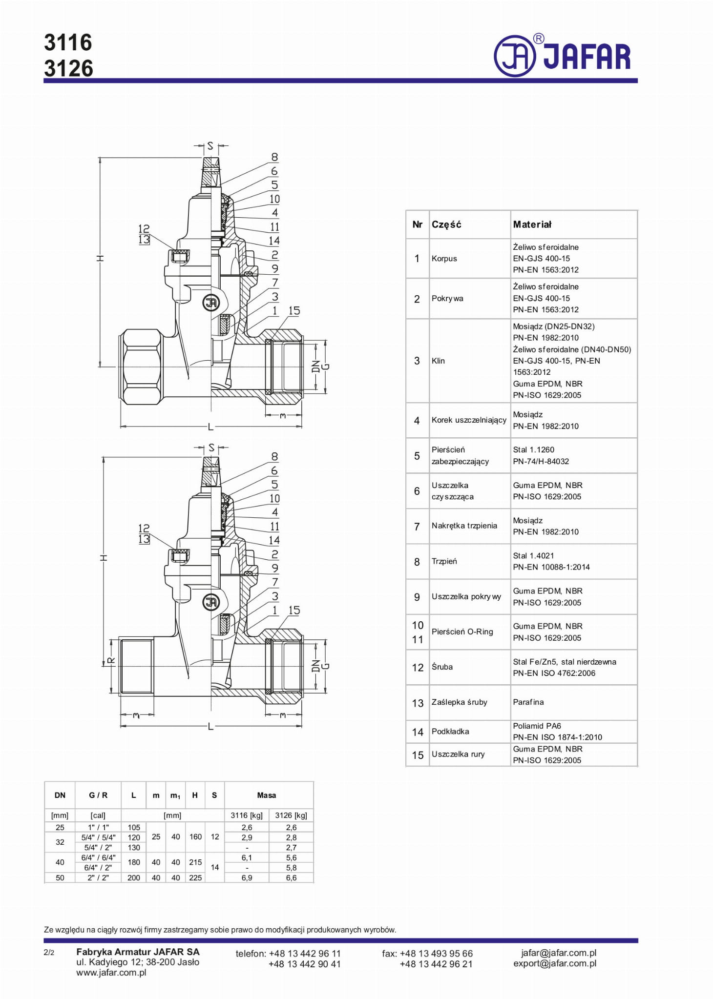Korpus i pokrywa zasuwy wykonane z żeliwa sferoidalnego.