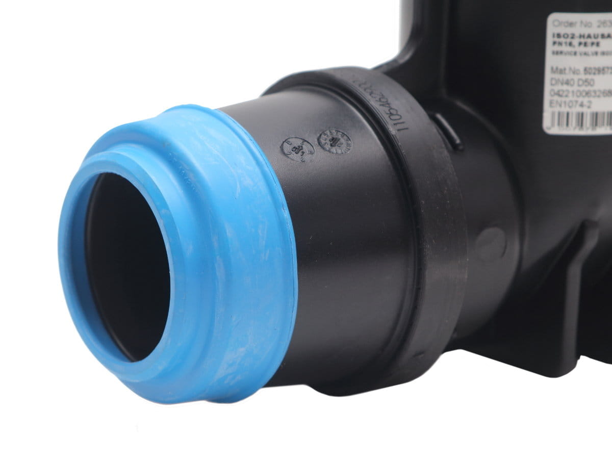 Zasuwa POM do przyłącza domowego 5/4" (1 1/4") z kielichami ISO do rur PE o średnicy zewnętrznej 40mm nr kat. 2630.