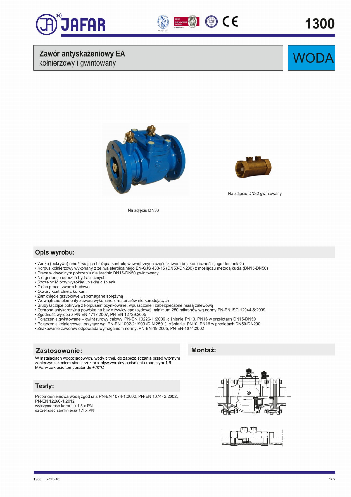 Zawór antyskażeniowy EA DN200 PN10 EA 1300 Jafar