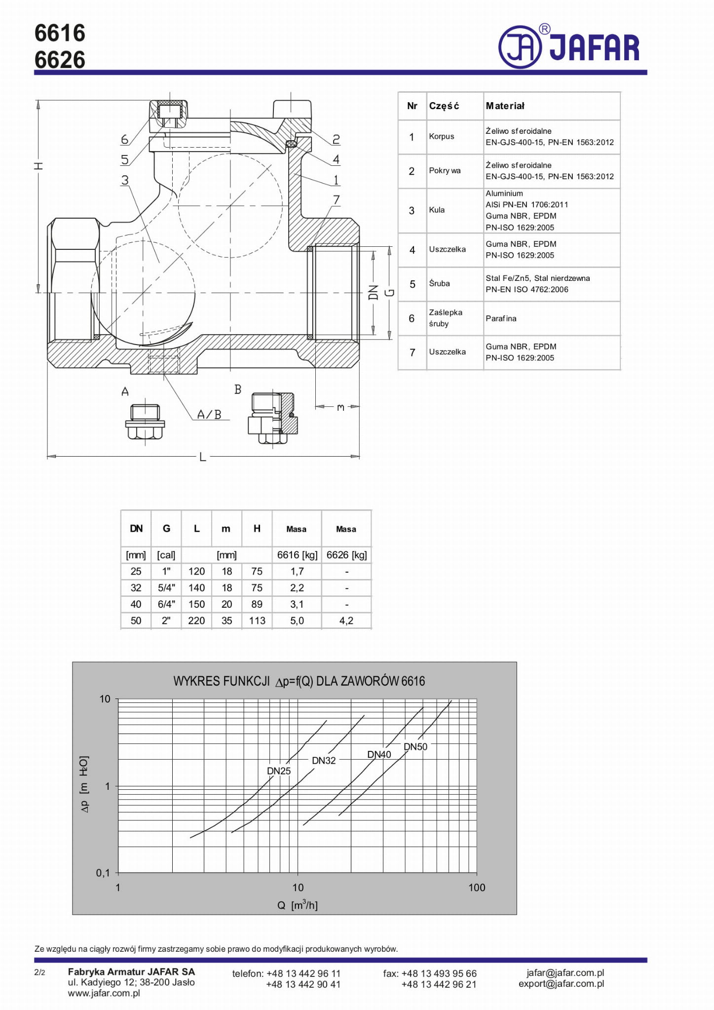 Zawór zwrotny kulowy o średnicy nominalnej 40mm, 6/4" PN16 nr kat. 6616.