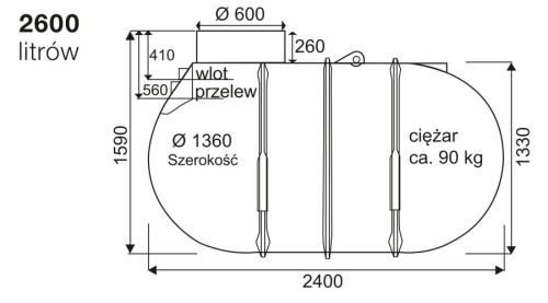 - pojemność: 2600l,